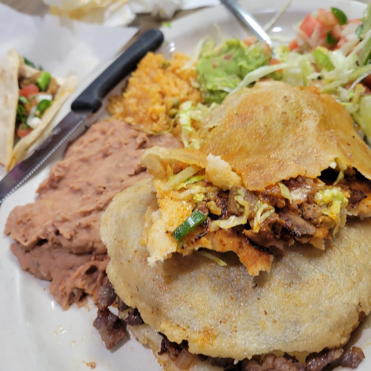The menu favors traditional Mexican breakfast and lunch staples. Expect hearty options like menudo and pozole for cooler mornings or pork chop plates and gorditas that come loaded with grilled onions. Their tacos stand out as particularly substantial — beef fajita, tripitas, and asada a la Mexicana are made with care, filled generously, and often mentioned as too big for a single sitting. Chips and salsa arrive quickly with your drinks, often accompanied by a refreshing iced tea or a michelada if you’re visiting later in the day.